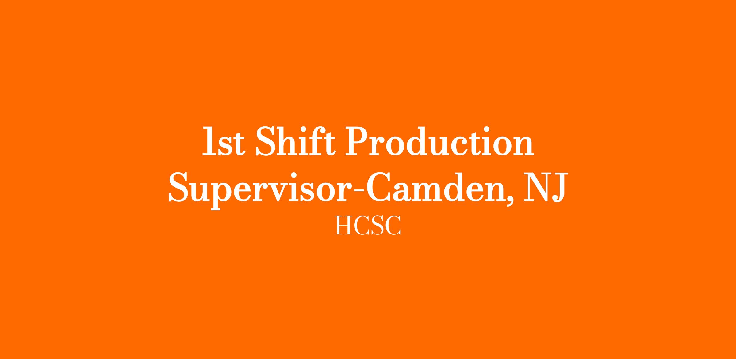 The 1st Shift Production Supervisor position supports and supervises assigned activities as they relate to the production employees in our Camden, NJ facility. The anticipated annual salary range starts at $48,200-$72,000 and is commensurate with experience. In addition, HCSC offer the following to all full-time employees: