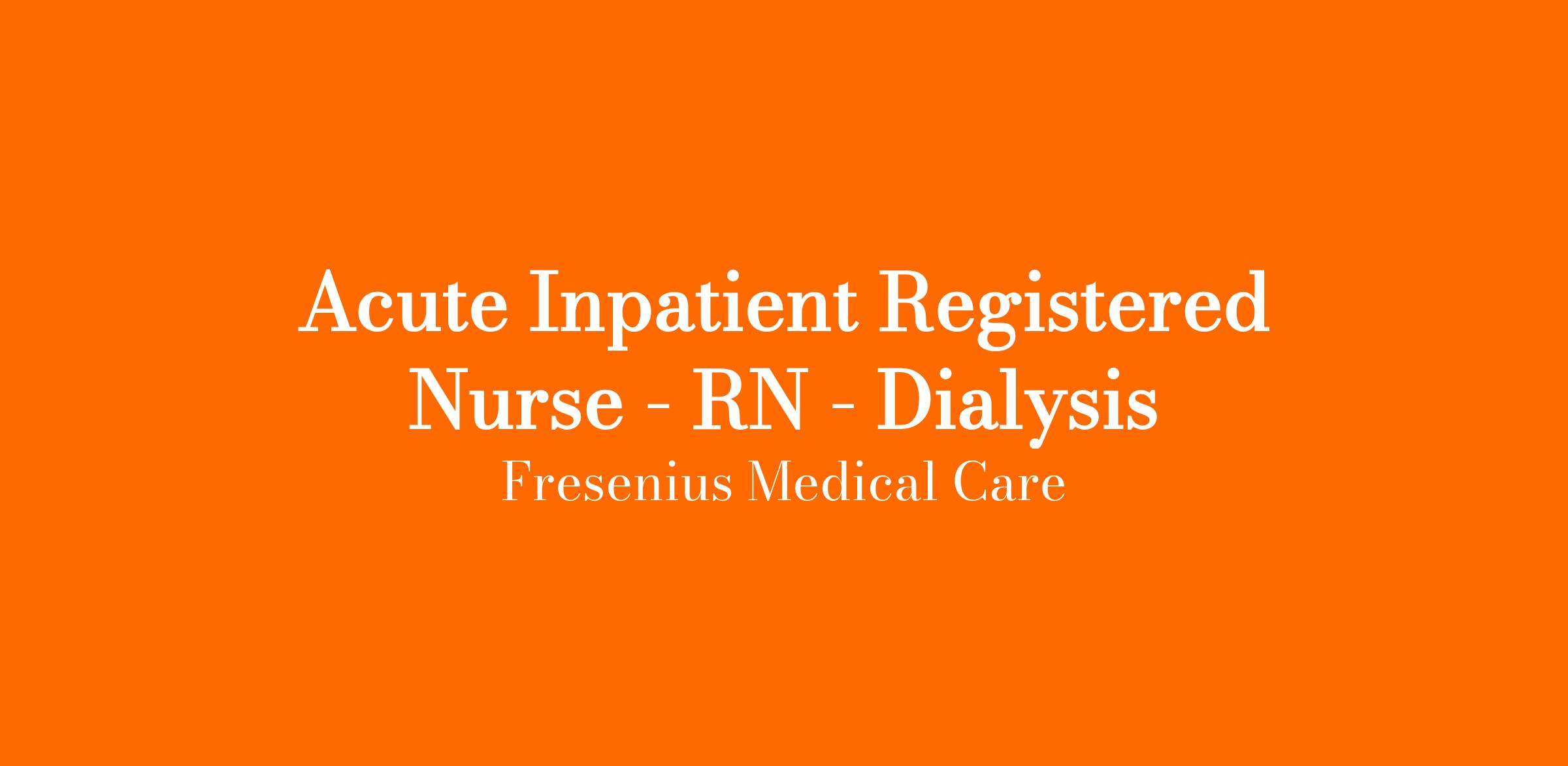 Acute Inpatient Registered Nurse - RN - Dialysis