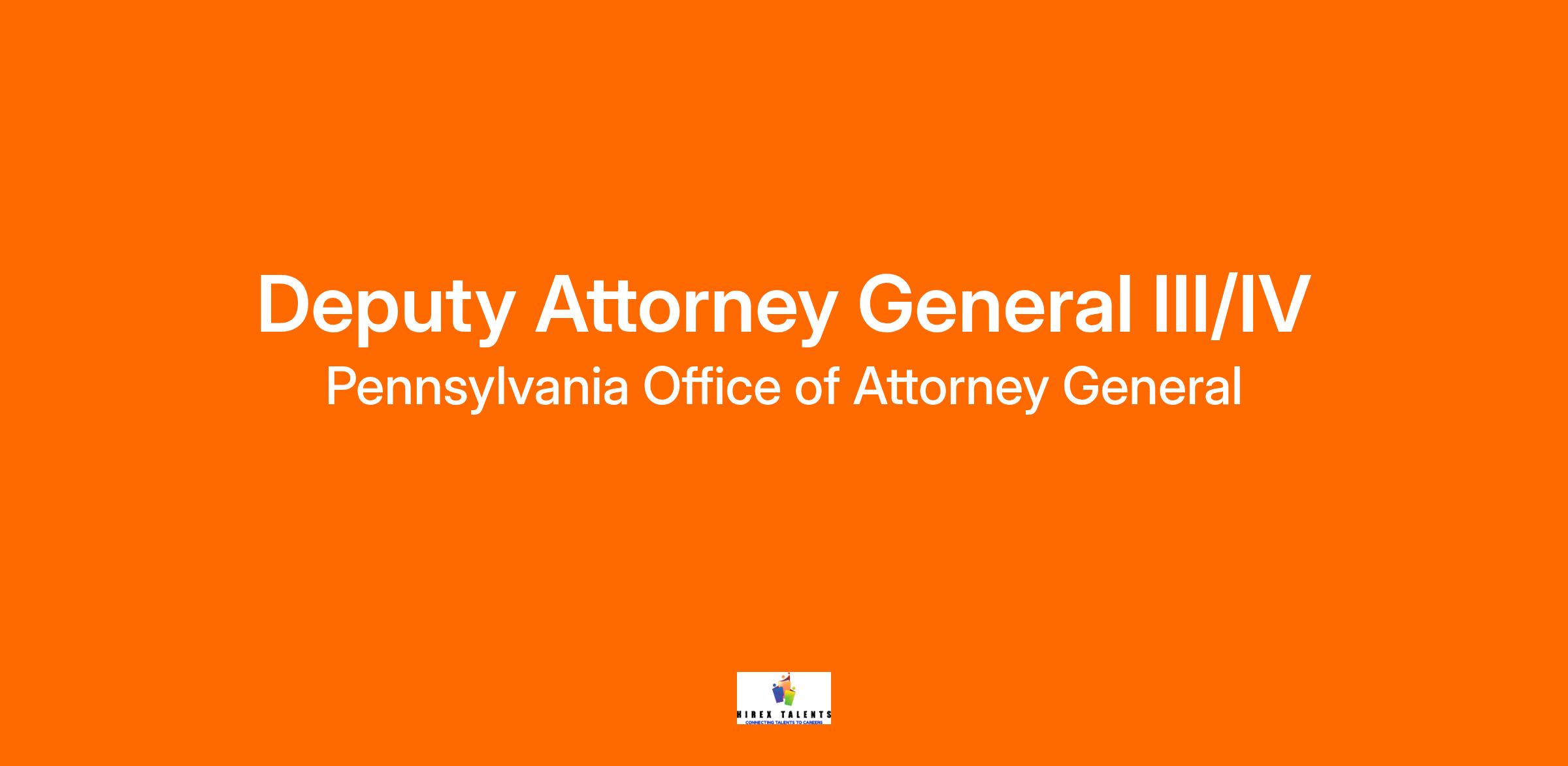 A Deputy Attorney General III (DAG III) will be assigned more complex and significant cases and works independently on most matters. A Deputy Attorney General IV (DAG IV) works independently except in extraordinary cases. This position requires occasional travel for client meetings or site visits, travel to the federal or state courts within any the districts of Pennsylvania for court appearances and occasional travel based on case needs or required training events.