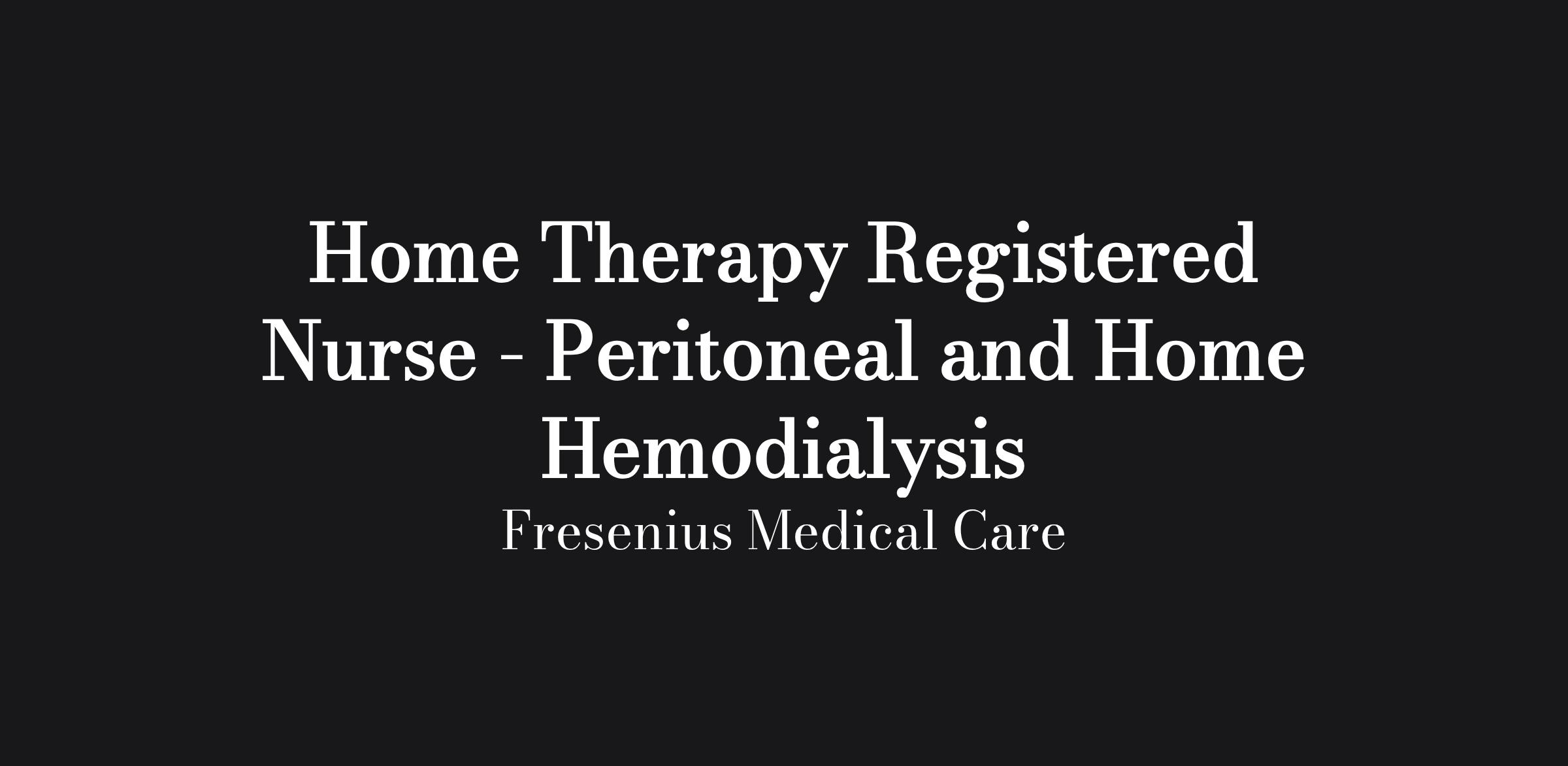 - Must have a minimum of 3 months experience home dialysis therapies as a RN.