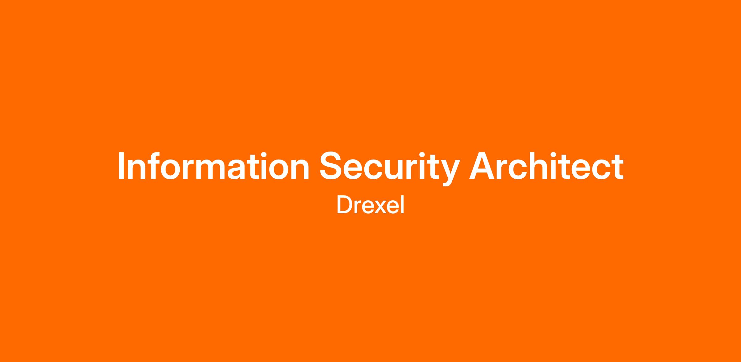 Reporting to the Chief Information Security Officer and working closely with the campus community and outside parties, the Information Security Architect protects the people, the information, and the systems of Drexel University.