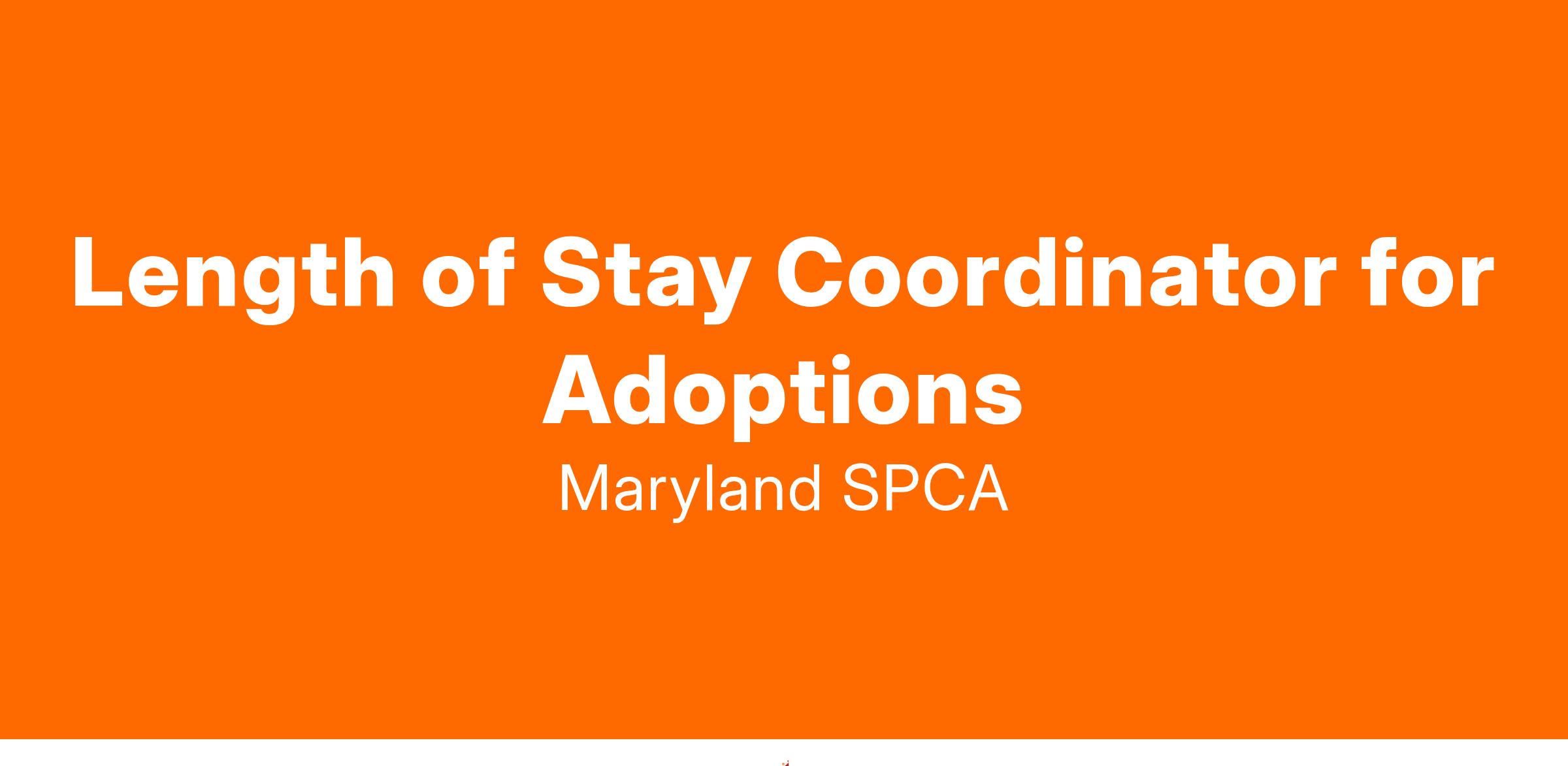 Length of Stay Coordinator's main role is to be an adoptions counselor specifically for pets available from foster homes. This requires coordination between adopters and foster parents and our teams in the shelter. Along with this responsibility they will attend shelter rounds and assist in LOS programs and tasks such as making pets available, coordinating the forget-me-not program, collaborating with marketing and communications on long term pets, and other responsibilities as needed. This is a full-time position reporting directly to the Adoption manager but working closely with the foster, LOS, and marketing teams.