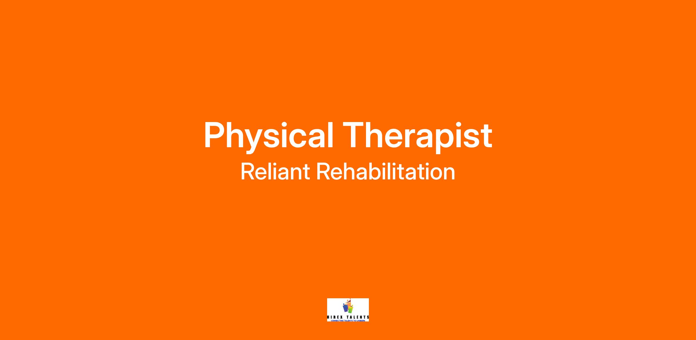 Provides physical therapy and related services for patients while maintaining positive levels of interaction with facilities and clients in accordance with the principles and practices of physical therapy and within Reliant Rehabilitation guidelines.  Provides quality patient care including screening and evaluation of patients, development of initial and ongoing treatment plans of care, discharge plan, supervision of assistants and Rehab Techs, and case management responsibilities.  Maintains professional conduct that represents Reliant Rehabilitation’s commitment to quality and service in all interactions with clients, including positive levels of interaction and rapport with facilities and clients.  Adheres to all state and federal regulations regarding physical therapy.