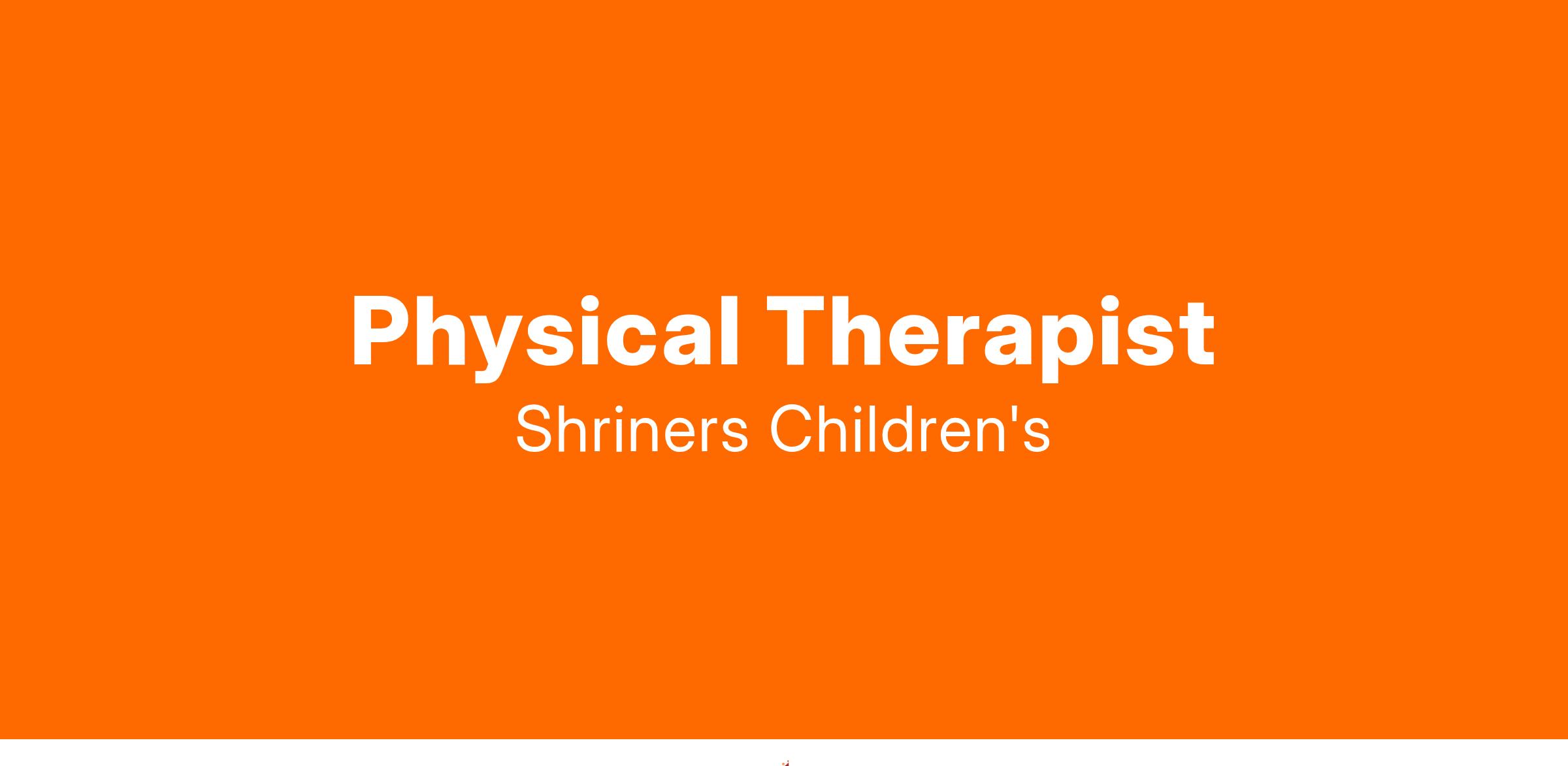Shriners Children's is the premier pediatric burn, orthopaedic, spinal cord injury, cleft lip and palate, and pediatric subspecialties medical center. We have an opportunity for a full time Physical Therapist to join our Rehab team.