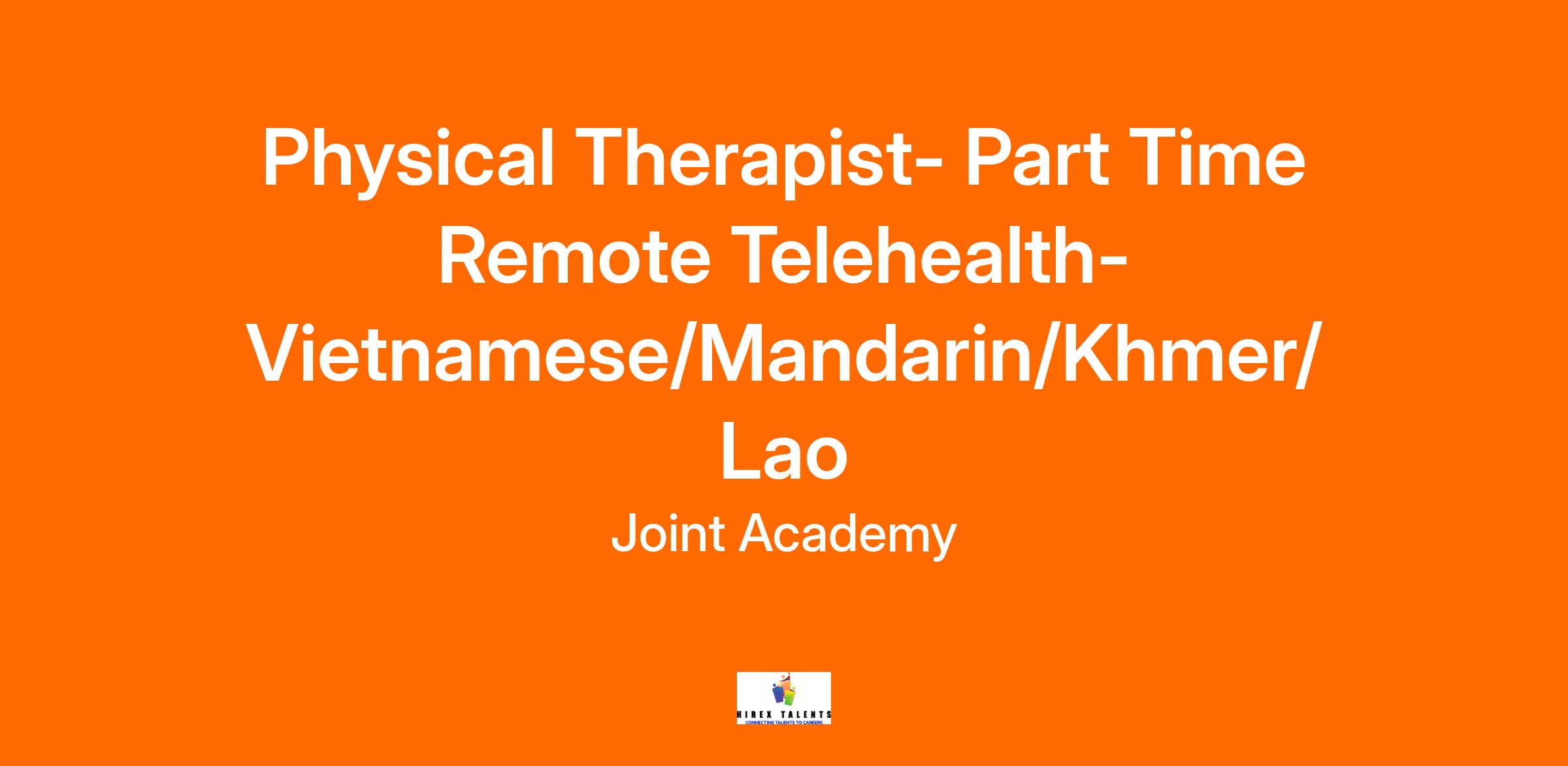 We are seeking Vietnamese, Mandarin, Khmer, or Lao Speaking PTs who will:
