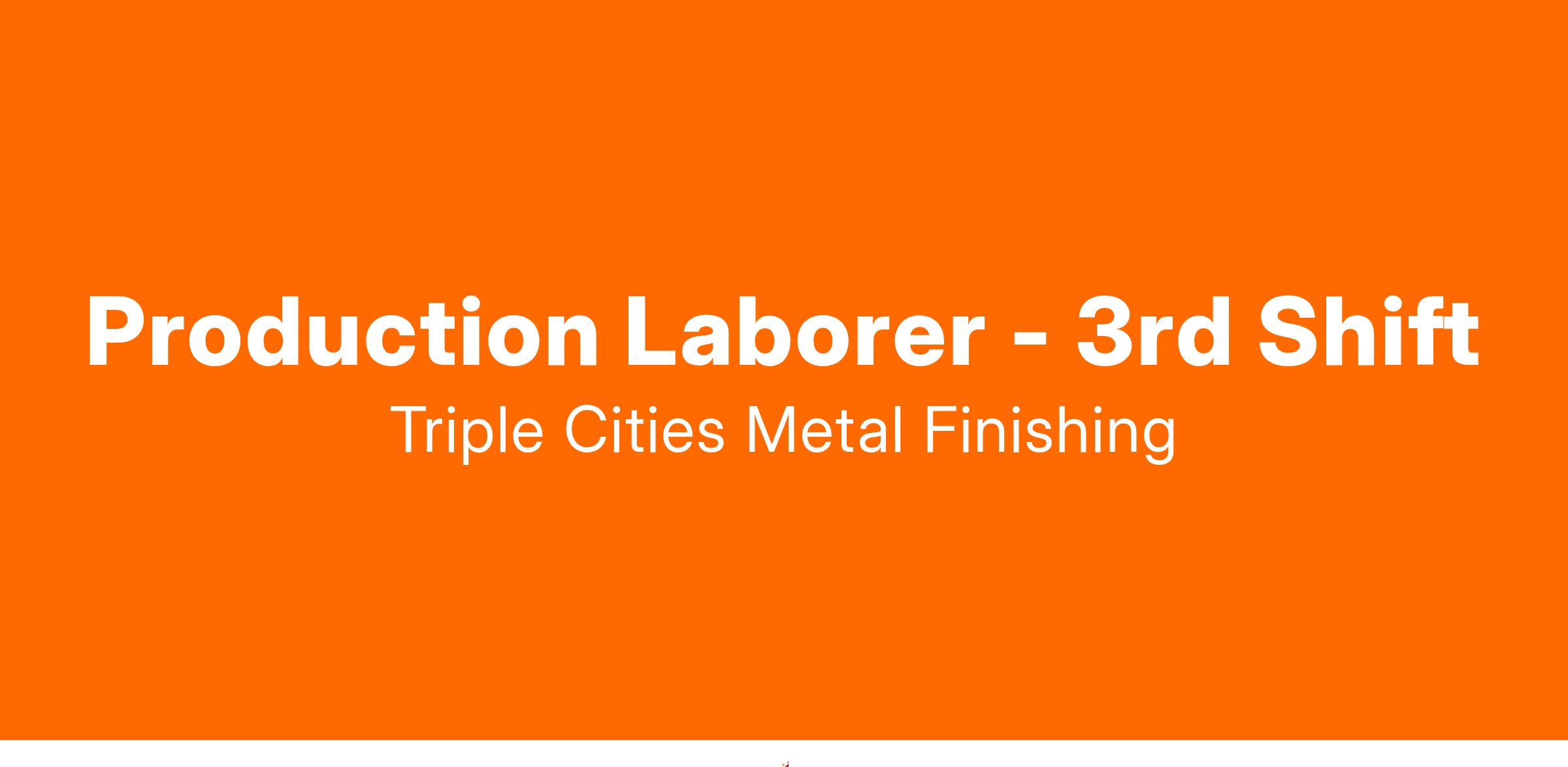 Triple Cities Metal Finishing is currently seeking a skilled and dependable Production Laborer to join our dynamic team and support our production operations.