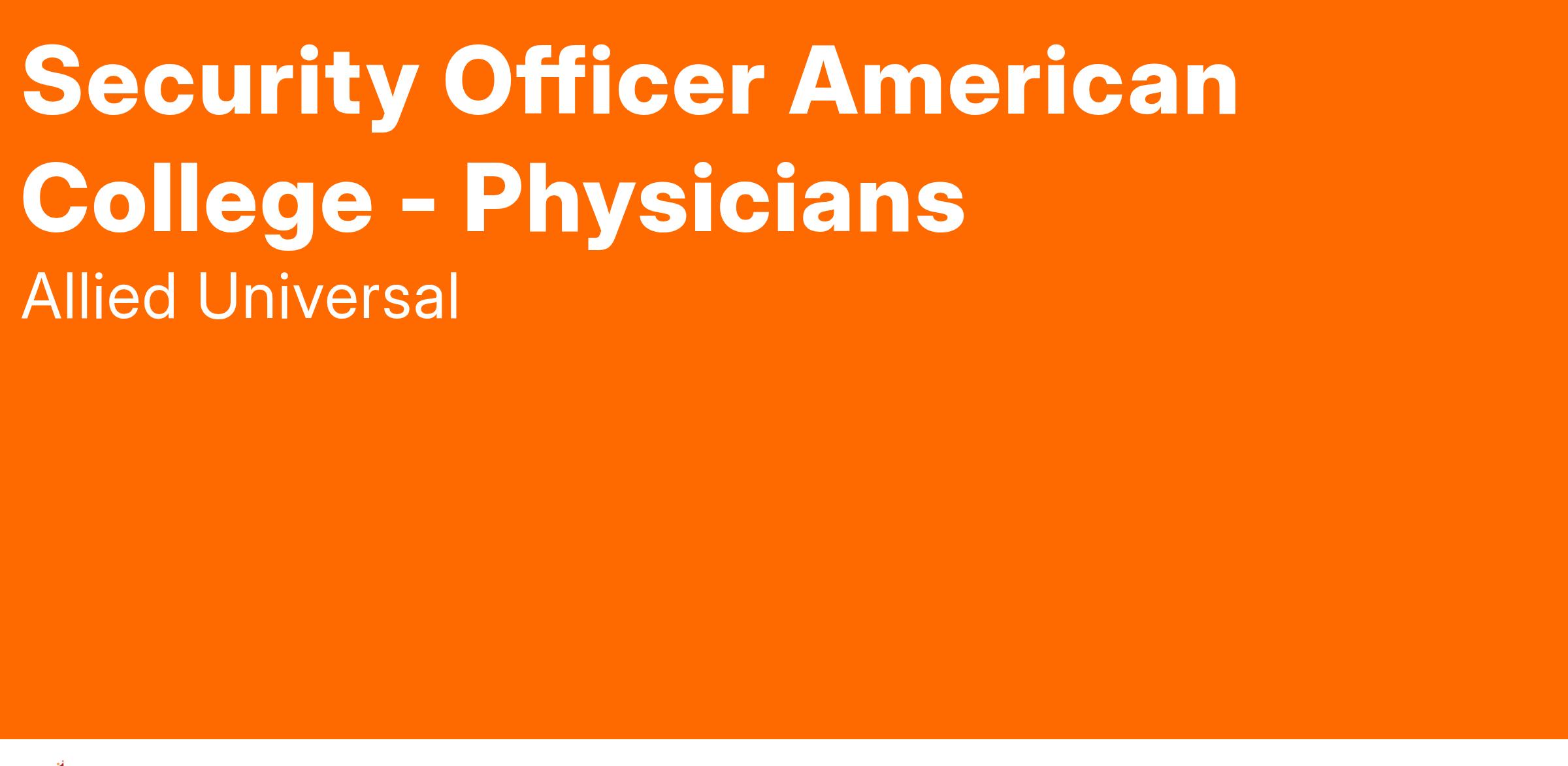 Allied Universal® is an Equal Opportunity Employer. All qualified applicants will receive consideration for employment without regard to race/ethnicity, age, color, religion, sex, sexual orientation, gender identity, national origin, genetic information, disability, protected veteran status or relationship/association with a protected veteran, or any other basis or characteristic protected by law. For more information: www.aus.com